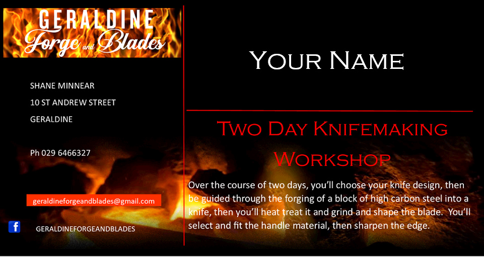 - Personal tuition to enable you to produce an enduring knife you will be proud to own and use